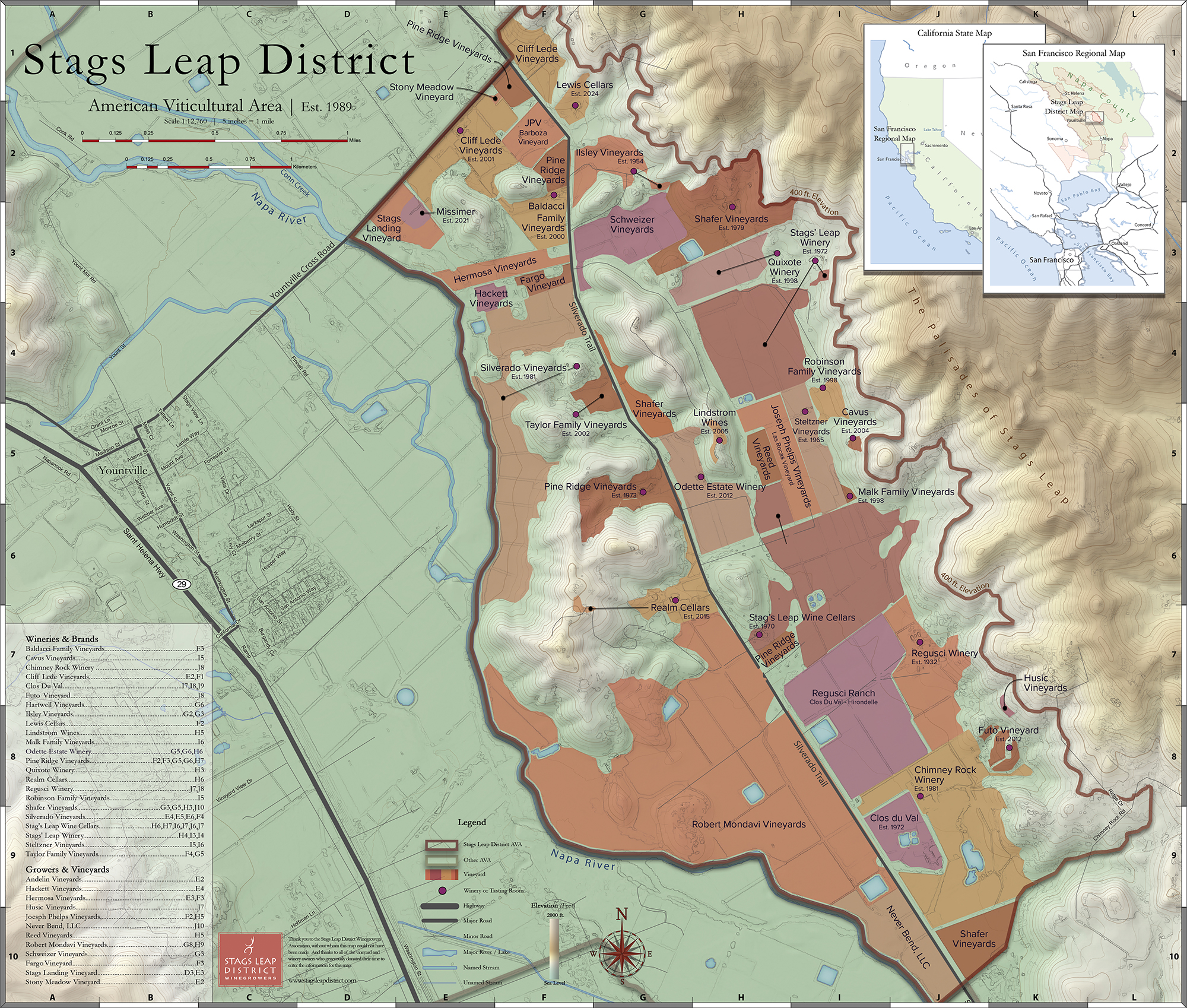 Zoom and scroll to explore the Stags Leap District's vineyards and geography.